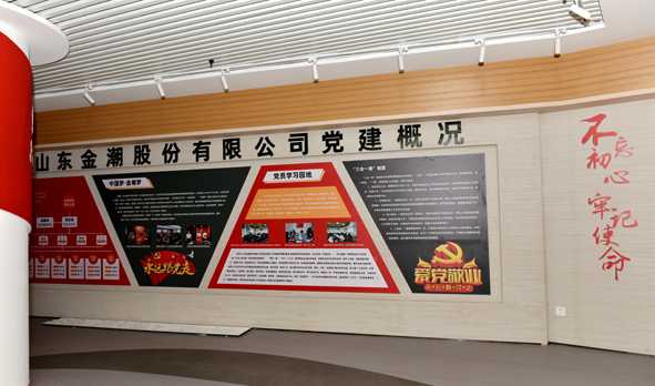 經(jīng)過前期的積極努力,2019年6月,金潮黨群示范中心平面及黨建展廳、企業(yè)展廳設(shè)計施工方案正式確定,7月底,土建及裝飾工程陸續(xù)全面開工。
