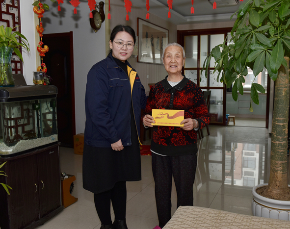 本報(bào)訊 (《煙臺(tái)日?qǐng)?bào)》水母網(wǎng) 文/圖 翟純明 劉妍宏 陳萍萍)1月16日上午,在山東金潮新型建材股份公司員工孫紹敏的家中,當(dāng)綜合管理部經(jīng)理孫陽陽將蘊(yùn)含金潮大愛的900元老人慰問金送到其母親手中時(shí),這位83歲的老人感激之情溢于言表。這是今年春節(jié)前夕,山東金潮股份公司行政人事中心組織各企業(yè)行政人事部門,為企業(yè)員工高齡父母發(fā)放“孝薪”的一個(gè)場(chǎng)景。據(jù)悉,今年春節(jié)前夕,金潮公司共計(jì)為321名員工438位高齡父母發(fā)放愛心慰問金31.6萬元。