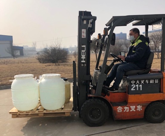近日,在復(fù)工復(fù)產(chǎn)的關(guān)鍵時(shí)刻,1.75噸防疫急需的各種濃度的消毒液陸續(xù)從金潮果蔬公司運(yùn)往股份公司、新材、電池、招和、建工、地產(chǎn),以及周邊溫家、鑫泰電纜廠和岔道村等單位。在抗擊新型冠狀病毒疫情的緊要關(guān)頭,為解各企業(yè)消毒液匱乏的燃眉之急,2月9日,金潮果蔬緊急安排生產(chǎn)、品控等專(zhuān)業(yè)人員到廠,積極組織干部員工加班配置消毒液。經(jīng)過(guò)不懈的努力,1.75噸各種濃度的消毒液配制完畢。