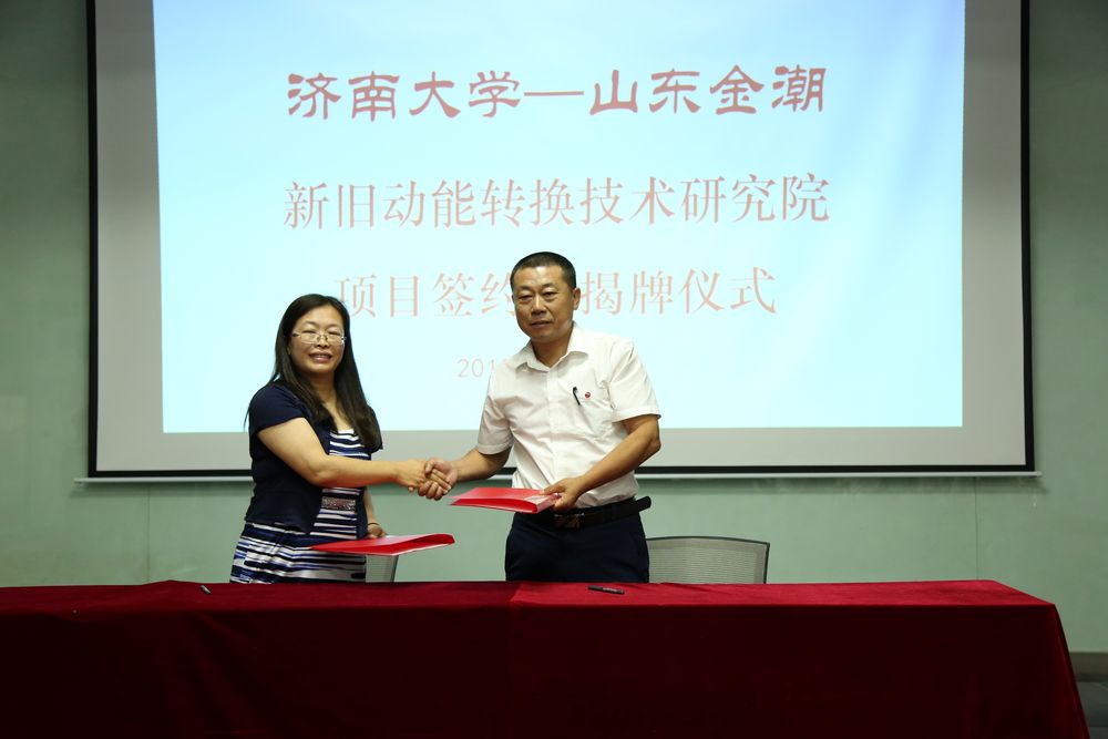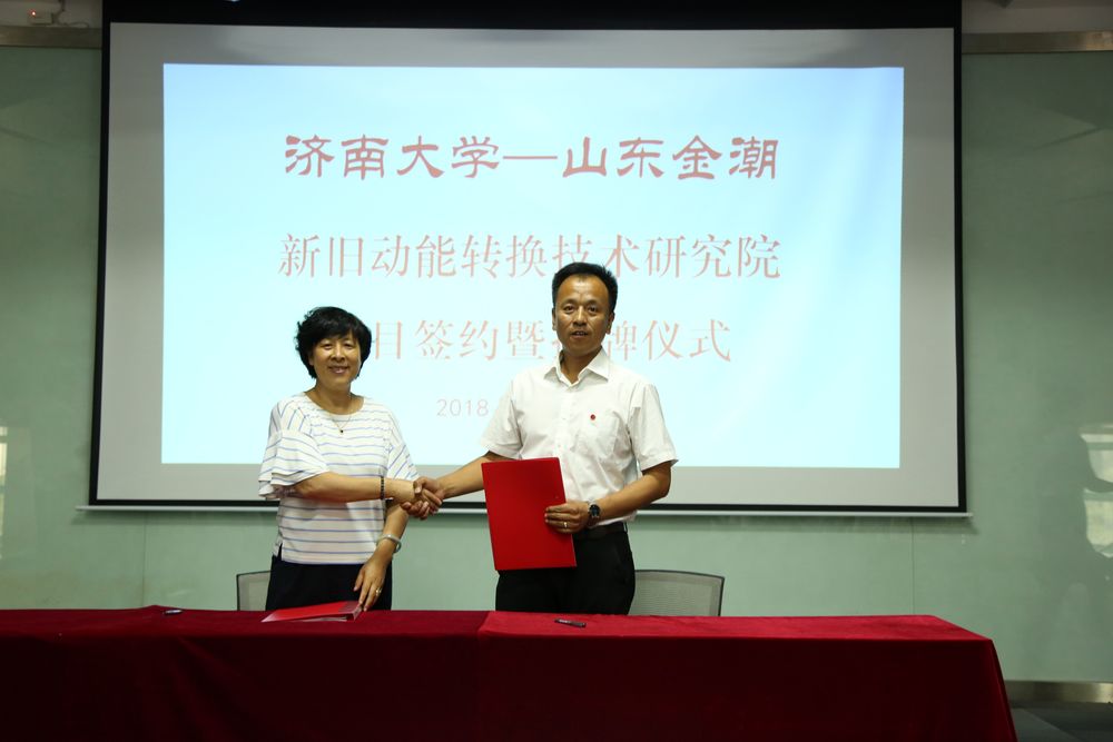 6月30日上午, 山東金潮公司在報告廳二樓會議室隆重舉行“濟南大學(xué)——山東金潮新舊動能轉(zhuǎn)換技術(shù)研究院”項目簽約暨揭牌儀式。這標(biāo)志著“濟南大學(xué)——山東金潮新舊動能轉(zhuǎn)換技術(shù)研究院”正式運行;標(biāo)志著“校企合作”戰(zhàn)略全面啟動。