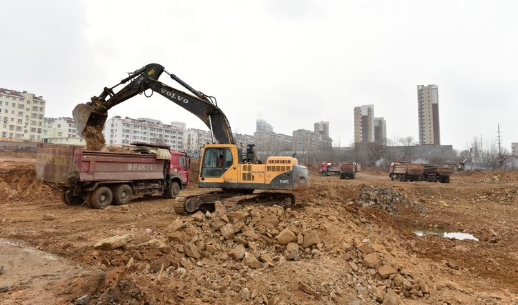 12月5日晚8點(diǎn),北風(fēng)呼嘯,雪花飄飄。在這天寒地凍的夜晚,馬路上行人稀少,人們大多都在溫暖的家中盡享美好的生活。然而在春雨路西側(cè),金潮地產(chǎn)格林春天項(xiàng)目工地上,筆者卻看到了一幅熱火朝天的景象:現(xiàn)場(chǎng)各種大型機(jī)械盡情地“歡唱”,“后八輪”往來(lái)穿梭搬運(yùn)物料,挖掘機(jī)的“巨手”與基坑內(nèi)堅(jiān)硬的石料碰撞迸發(fā)出飛濺的火星,破碎錘“突—突—”不知疲倦地轟鳴著……這是金潮建工的工程車隊(duì)在加班開(kāi)挖格林春天項(xiàng)目的地基。此時(shí)此刻,標(biāo)志著備受市民關(guān)注的“一生之城”——格林春天棚改項(xiàng)目正式破土動(dòng)工。
